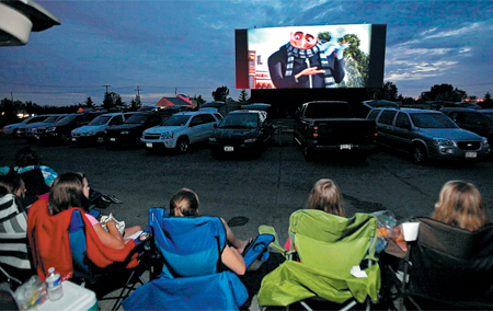 Gathering Story Series BUFFALO NEWS Monday, July 26, 2010 Section: Local News Page: B1 Madeline and Tyler Nadrich had been ready for this evening, their first drive-in outing of the summer, since noon. When the girls got home from church and before they got permission from their dad, they packed the car with the big body pillow, two bed pillows, one blanket and all their stuffed bears and dogs with string leashes tied around their necks. It was almost 9 o'clock on a Sunday at the Transit Drive-In, and the animated 3-D movie about an evil mastermind who plans to steal the moon was about to start. Swatches of pink sunset broke through the panel of steel gray clouds. The main screen loomed expectantly, seven stories tall, still blank, over the parking lot. "A screen this big cannot fit in your house," said Tyler, 10. The movie was supposed to be good. The commercials played up "Despicable Me"'s villain, voiced by a famous comedian. "I want to hear Steve Carell's accent," said Madeline, 8. The Nadrich sisters were in their pajamas. Having prepared with a nap and a day of good behavior -- "We had to act good," said Madeline -- they were nestled in their viewing spots in the back of the family car. Like most of the roomier cars, vans and pickup trucks at the drive-in, the Nadrich SUV was parked backward, the rear facing the screen and parents lounging in folding chairs beneath the opening. They had arrived early and got a good spot near the main screen and the miniature golf course. They were in the middle of a pre-movie camp-out party they'd made up for themselves. Tyler brought her library copy of the "Eclipse" vampire novel. Madeline played a small palm-sized video game. Pop and Skittles and chocolate Sno-Caps were within reach. Drive-in owner Rick Cohen, 42, glanced in their direction. The fun of hanging out before the movie was part of the magic of the place. The drive-in's power to make people happy -- from tailgate picnickers at the four screens to kids riding the playground spinner in the middle of the golf course -- is part of why he left college to work at this outdoor movie palace-playground. His grandfather bought it in 1957, five years after it opened in the rural outskirts on Transit Road in Lockport. He loves the quirky American tradition better than the million dollars he feels sure he could make tomorrow if he sold his 16 acres on what is now a busy suburban highway. "I don't want to be the guy who closes the last drive-in in Western New York," he said. Besides, he said, business is good. He just had two record summers. This one -- with all the warm clear nights and hits from "Toy Story 3" to "Eclipse" -- is on track, too. "You just can't get any busier when you're turning away hundreds of cars," said Cohen, who has to walk along the roadside announcing sellouts by megaphone to cars that can line Transit for a mile each way. On the most popular Friday and Saturday nights, some 2,000 adults and 600 children, paying $8 and $3, respectively, can come, in 1,100 cars. They fill rows, edge into bits of space at the ends and park on the lawn. Many arrive an hour or so before the movie starts and play cards and board games, sip wine by folding tables and even pitch tents. Joe Pusateri still thinks fondly of the truck that arrived with a sofa in the back. "People get pretty creative," said Pusateri, who has been helping park cars for seven summers. "I get paid to watch kids' movies. It's great." It was about three years ago, after Cohen's father died, and another drive-in, the 66-year-old Buffalo Drive-In, in Cheektowaga, closed, when Cohen's worry about his own mortality and the future of the drive-in led him on a quest. He chronicled the state's outdoor-movie-theater history, from the Quebec border to Long Island. Protectively and curiously, he searched newspaper microfilm at the library. He copied old ads and stories announcing openings and closings. He went to the old addresses and photographed what he found: Big box stores and drive-in graveyards. Movie screens with tile panels missing like teeth from an old smile. Empty lots with weeds growing as tall as the little poles that once held sound speakers that people perched on car windows before the 1980s, when drive-ins were tuning movie sound through car radios. After he tracked down 20 that were once in Erie and Niagara counties -- only Cohen's and Middleport's Sunset Drive-In remain -- he didn't want to stop. He kept going and learned how to build a Web site. He took road trips and used off-season time in colder weather months, until he had found that 28 drive-ins are still open out of the 183 that existed in the state from 1938 to now. His nostalgia is contagious. People have been e-mailing him and posting memories on his historic catalog at www.newyorkdriveins.com. One couple said he's inspired a drive-in road trip -- "Has anyone else done what Ang and I want to do? Or do I start [an] exclusive club ..." When young fans asked to be married here, Cohen registered online to become a wedding minister. The couple exchanged vows at intermission a few Saturdays ago as tealights flickered along the plastic grass at the 18th hole. Horn beeps, merrily out-of-sync, broke out all over, when Cohen said in his movie-radio-channel ceremony broadcast, "Honk now or forever hold your peace." He remembers how the drive-in enchanted him when he was a boy. He watched "Chitty Chitty Bang Bang" and "Dumbo" from the car in his pajamas and got carried to bed after the drive home. Now during the summer, he is too busy to lose himself in the movies as he used to. Instead, his audience does. At the end of "Despicable Me," the evil crook had turned into a doting, dance-recital-watching father. The movie wasn't what Tyler expected. It was better. "I loved it!" she said before her sister puffed her cheeks with air and tapped them to make noise like she'd seen the girls in the story do. They were ready to go. Mike and Susan Nadrich expected their daughters t