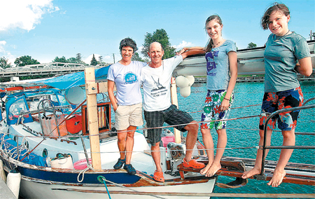 | Sailing into port and home after 7 years Family's odyssey around the world ends in Buffalo, where husband grew up BUFFALO NEWS Thursday, July 29, 2010 Section: News Page: A1 As the Hopkins family headed through the last of the locks on the Erie Canal in their sailboat Estrela this week, their seven-year trip around the world finally came to an end. They were getting closer to the possibilities of life and friendship on land. A new beginning with a new house, new schools and a new career of teaching at Buffalo Seminary this fall, seemed as exciting as their round-the-world ocean adventure did when it began in 2003. They sailed thousands of miles through the Panama Canal and the Pacific Ocean, Australia, Malaysia, South Africa and then, in the end, made their way through the canal to make a home in the city where Doug Hopkins grew up. As they headed toward home along Brazil's coast, the couple made plans for teaching careers at journey's end. That they landed two positions in Buffalo was one of the many surprises of their odyssey. In a month, Doug Hopkins, 53, will teach history, and his wife, Kyle, 46, will teach health, help coach field hockey and guide community service work. After home-schooling their daughters at sea, teaching young women had become a new vocation. The same instinct led them to start their odyssey. Doug's intense job as lawyer and co-founder of the oceans program for the Environmental Defense Fund had led him to spend more and more time away from his wife and daughters, Abigail and Eliza, who were 5 and 8 when the journey began. "I never grew up sailing," Kyle Hopkins said. "I never wanted to sail. I never wanted a boat." But then, a family outing on a lake in New Hampshire got her curious enough to consider the sport that had infatuated her husband growing up in Buffalo. Slowly, the couple hatched a plan from their Connecticut home that they would eventually sell. They calculated the expense, figuring they could live on $25,000 a year. A sail-around-the-world guidebook said it should take three years. For $68,000, they bought Estrela -- Portuguese for "star" -- a used, 32-foot sailboat. For Kyle Hopkins, heading through the Panama Canal was the real beginning of the trip -- when the view of the Atlantic disappeared and the Pacific lay before the family. It had been five months since they left Connecticut. New medicine for seasickness was finally working, and she'd mastered bread baking in the tiny galley oven. As the years went by, the family adjusted and carried on with their journey. The girls grew, and new home-school textbooks awaited in the mail at ports, helping them to navigate about seven grades. They decided it was OK to go slow. They conserved money and cooked rice, beans and lentils on the boat instead of dining at port restaurants. They navigated by charts and a global positioning system. They used solar panels, a wind generator and propane for stove and computer power. In Australia, they heard about a flotilla headed to Thailand and joined in. On long lonely passages, dolphins had a habit of appearing just in time to cheer them up. They worried about pirates when a boat of strange men came close and stared menacingly before turning away. They came within a quarter mile of colliding with a freighter. They got stuck in South Africa for 15 months, partly because the replacement for a dead battery kept getting stuck in the mail. They had changed as people. "I feel much more aware of how small the world is," Doug Hopkins said. They met struggling families, cooking on open fires and dirt floors, too poor to buy medicine and too stressed to look after the environment. He's decided that in the future, his advocacy will include fighting poverty. They had adventures. Abigail sat on a tiger's stomach in Thailand. At a city stop on a road trip through Namibia, mother and daughters joined a Peace Corps volunteer for his class for girls about how to fend off male attackers. "We walked out of the building, stepping high with our chins up," said Eliza. "I think it's inspired me to go out of my way to help other people." The Estrela's cabinets and wall panels are decorated with mementos of a happy, far-flung life. Hanging from a kitchen cabinet is a cluster of vanilla beans they obtained in Madagascar by trading glass jars and an old T-shirt to a woman they met in a dug out canoe. A creamy brown springbok antelope skin from a game park in South Africa nicely hid the clutter of the family's instrument collection of guitar, violin and flute that they sometimes played together. In thinking about the life change ahead, Eliza, now 15, and Abigail, 12, say they will both miss teaming up to take a turn doing a night watch. Together they'd stay up and look for danger while their parents slept. The serene quiet and peace of being in the middle of the ocean is like nothing else. Yet land friendships seem bound to be an improvement. Since last month, when they left Connecticut, headed up the Hudson River and into the Erie Canal, the family's new home seemed unhurried and serene. A little like the ocean's horizon, it seemed to stretch with promise. |